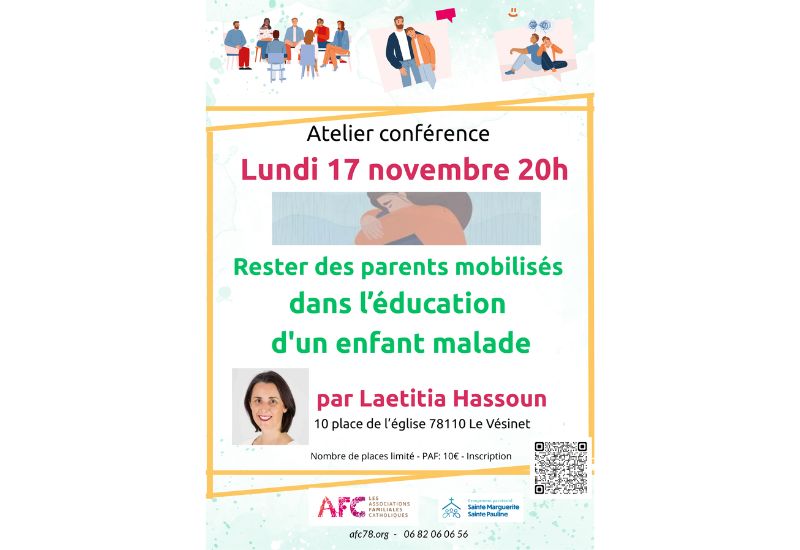 Rester des parents vivants et mobilisés dans l’éducation d’un enfant malade, Lundi 17 novembre à 20h à la maison paroissiale (10 place de l’église au Vésinet)